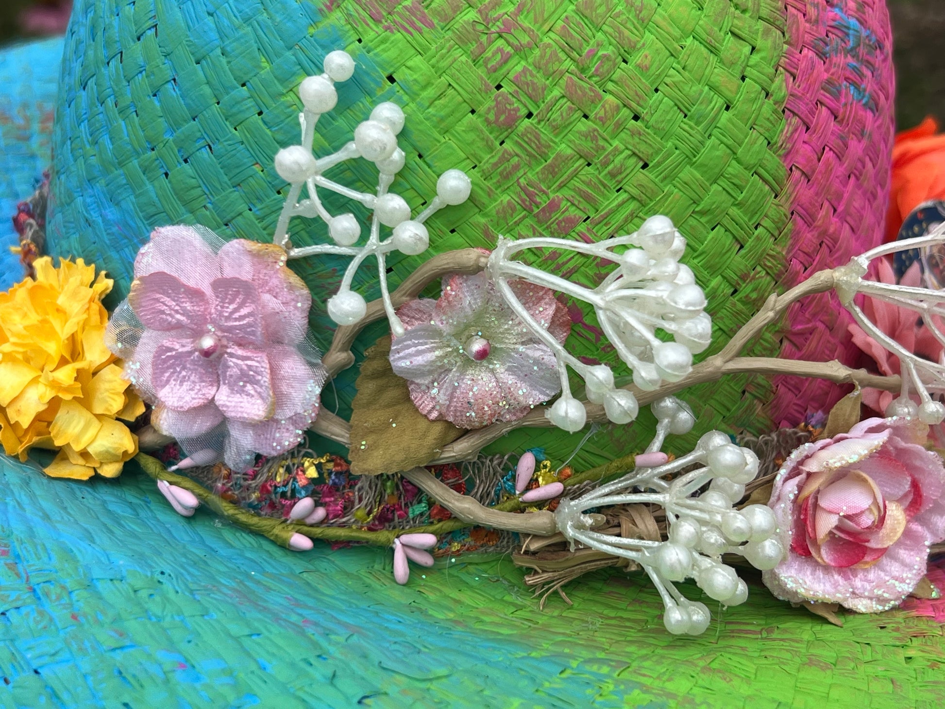 Embrace bold seaside style with the Sunset Coastal Charm Straw Hat. Hand-painted in vibrant blues, greens, pinks, and oranges, this hat features a colorful lace band, delicate flowers, and a striking mermaid medallion. With a 4" brim and crown, it’s designed to fit most and perfect for beach weddings, photo shoots, or daring adventures under the sun. Make a statement wherever you go.